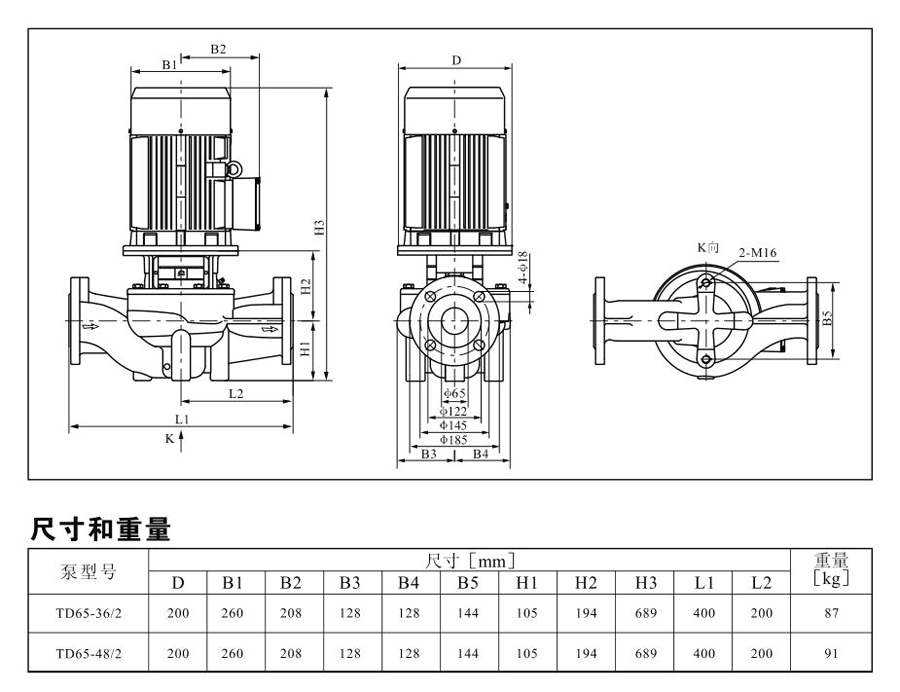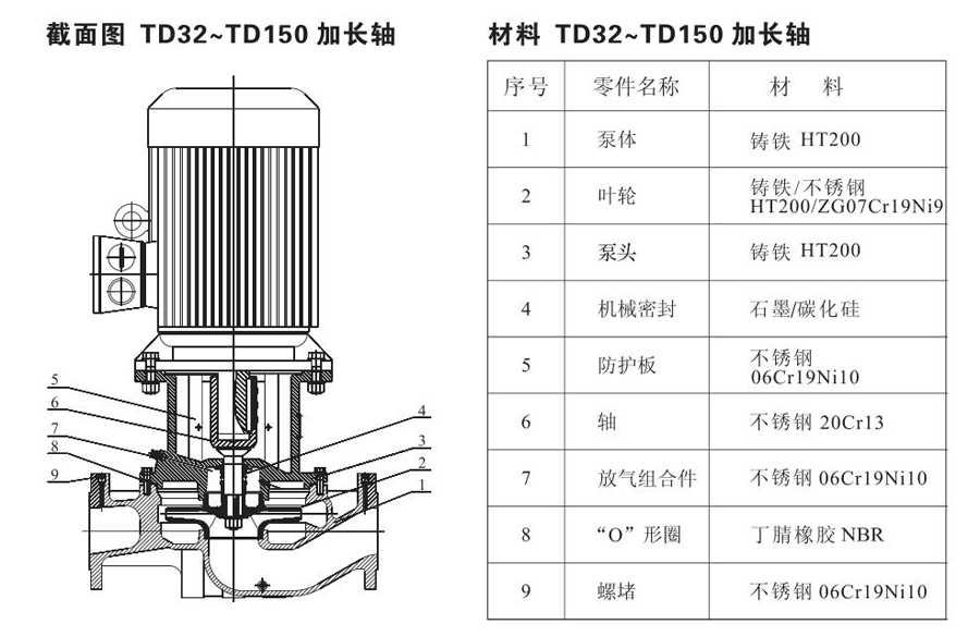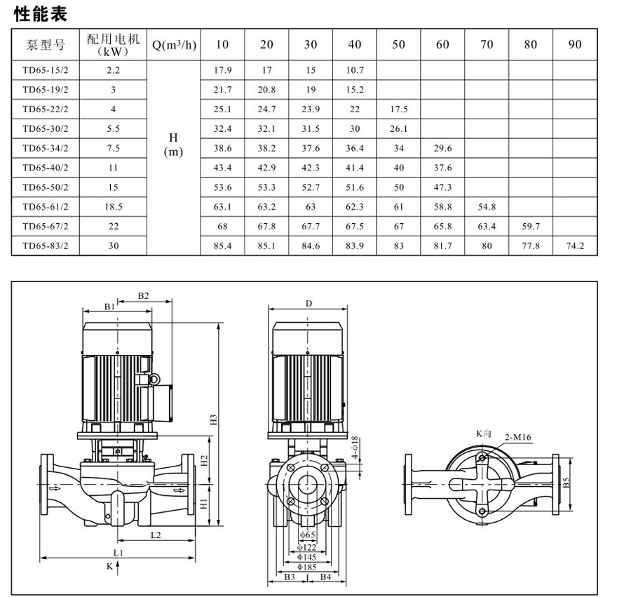 TD65系列單級管道離心泵,配有標準電 機和機械密封。此類產(chǎn)品的結構與相近類型產(chǎn)品相比,更不易受到泵送液體中雜質的影響。產(chǎn)品設計為頂部可拉出的拆裝形式,其可 以在不影響管路系統(tǒng)的情況下對泵進行維修。所有泵采用創(chuàng)新式便拆式機械密封,更好機械密封無需拆卸電機。